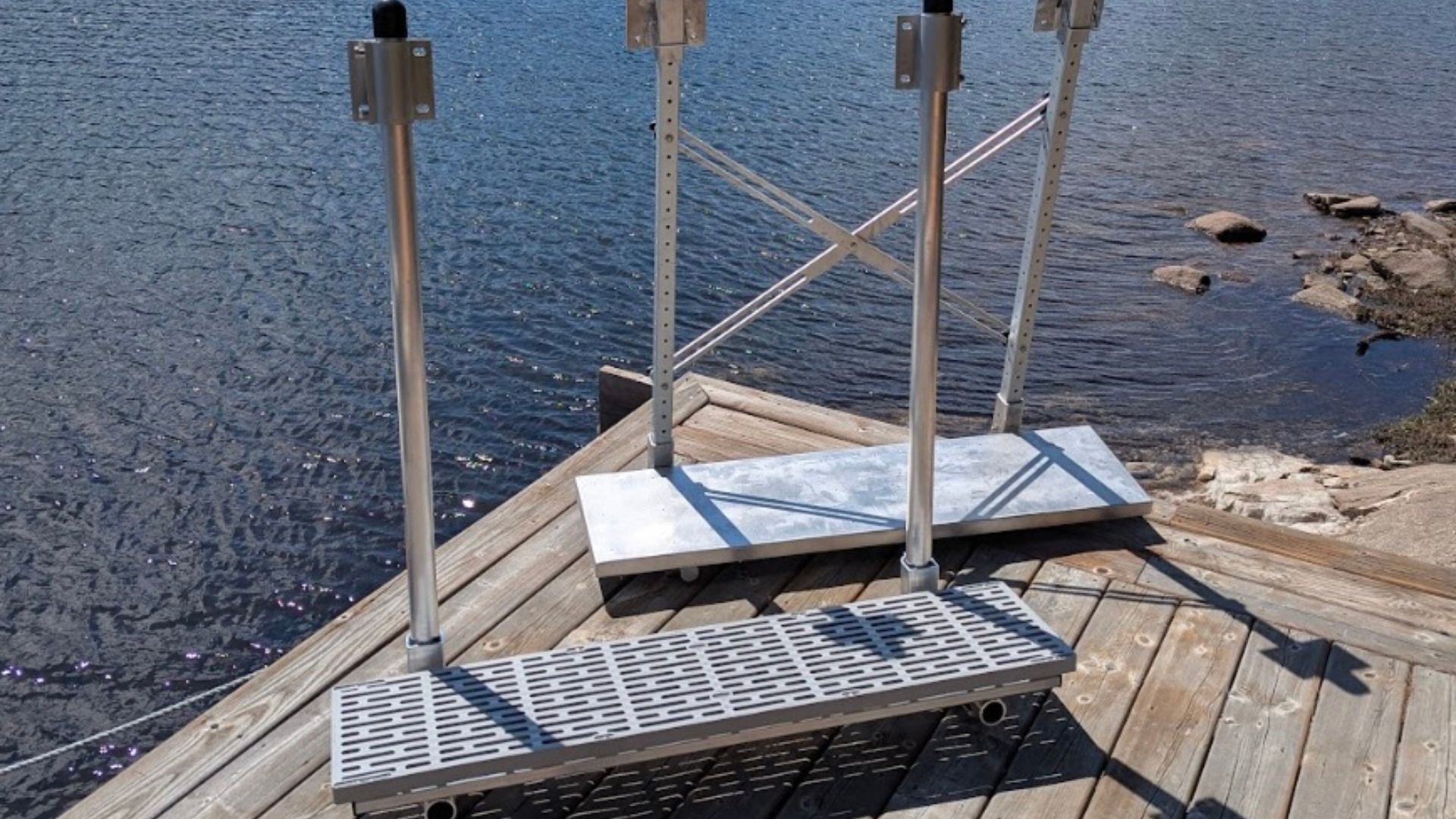 The Dock Ledge is an innovative in-water platform that attaches easily to your dock, creating a new space to relax, play, or launch your next adventure. With adjustable height options, it adapts perfectly to your setup. It even folds up for easy winter storage!